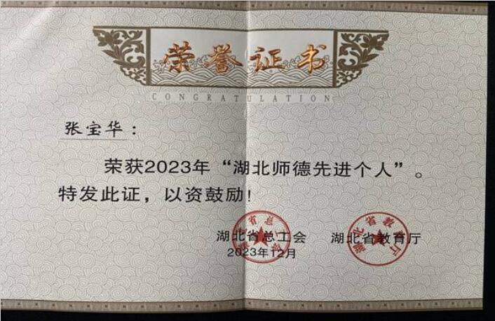 信息工程学院教师张宝华获得2023年“湖北师德先进个人”荣誉称号