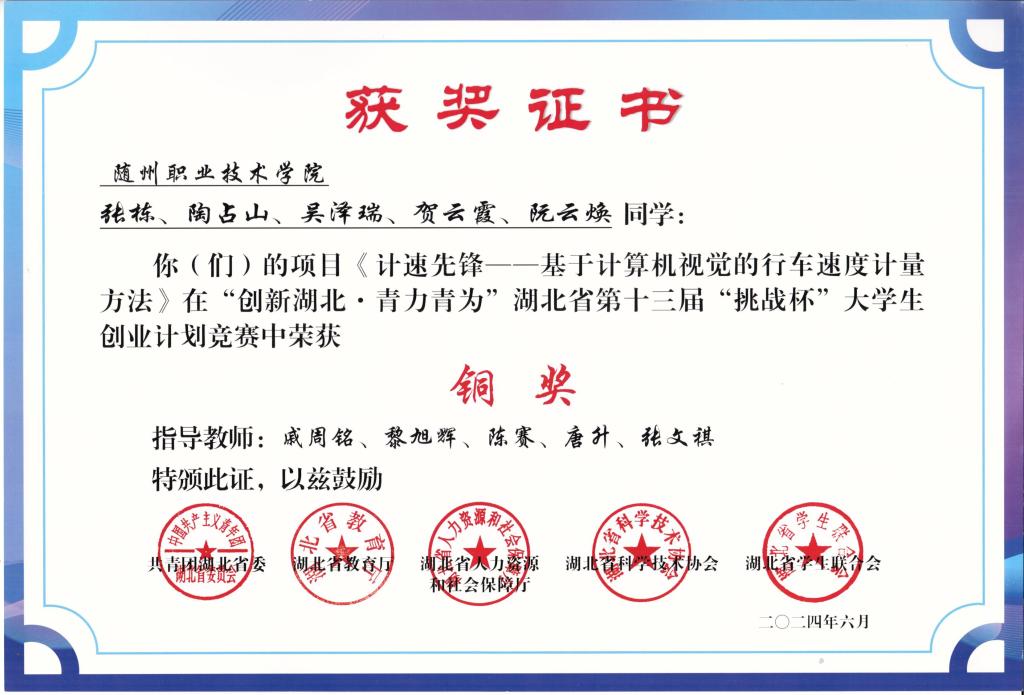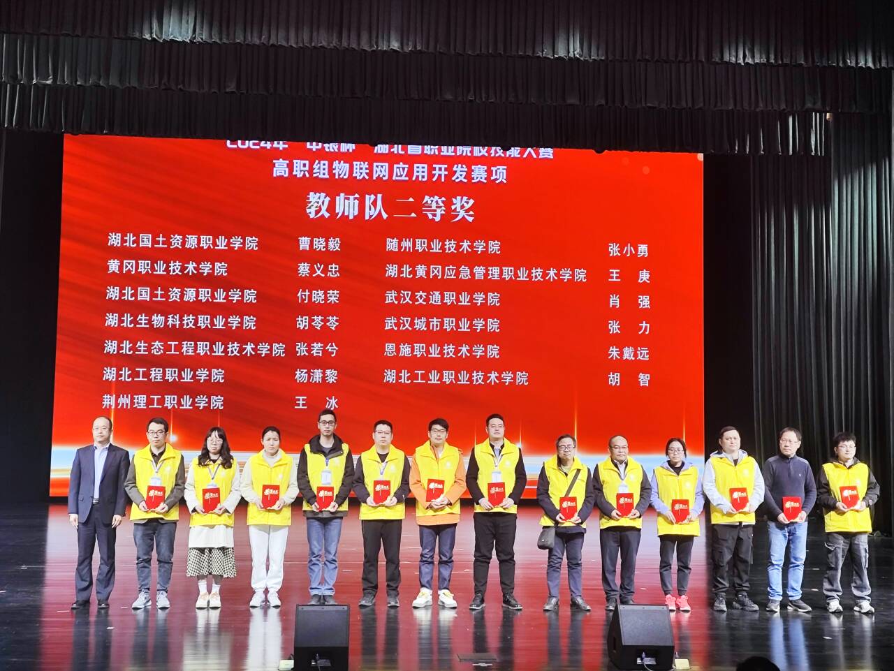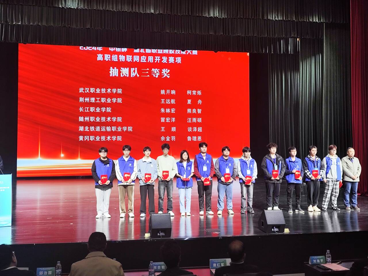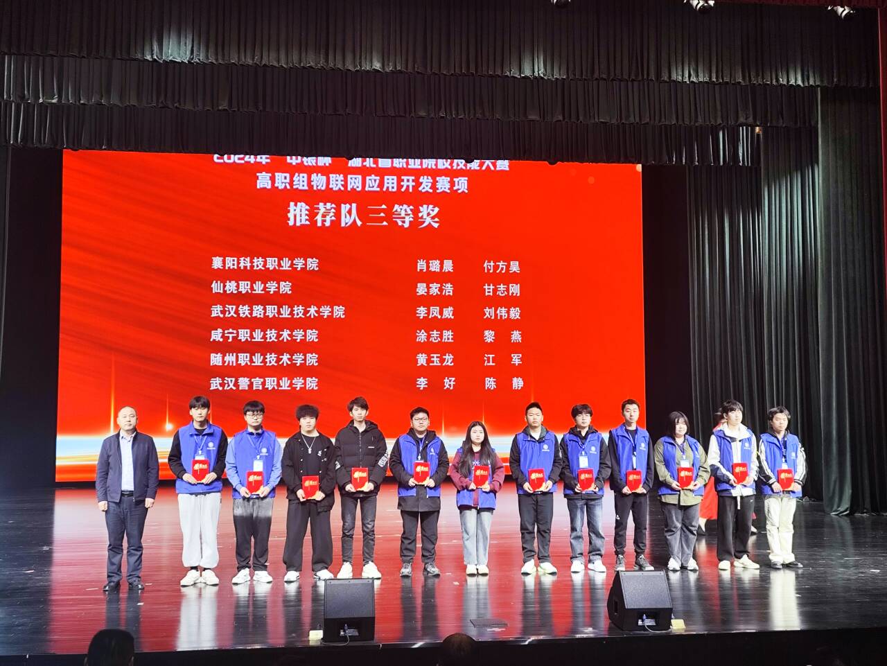 2024年湖北省职业院校技能大赛高职组物联网应用开发赛项,我院学生江军、黄玉龙组成的团队获得推荐组三等奖,汪雨硕、冒宏洋组成的团队获得抽测组三等奖,张小勇老师获得教师组二等奖。