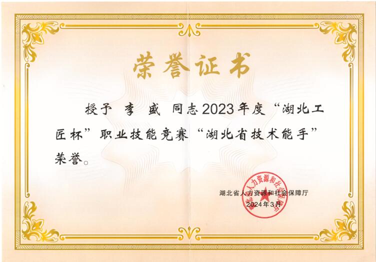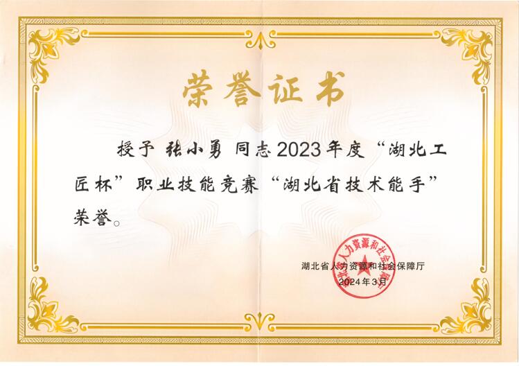 信息工程学院张小勇、李盛两位教师获得2023 年度“湖北工匠杯”技能大赛“湖北省技术能手”荣誉