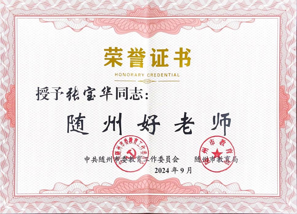 信息工程学院教师张宝华获得2024年“随州好老师”荣誉称号