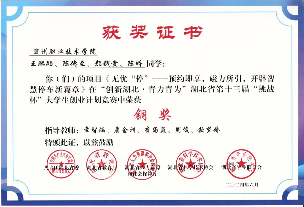 我院在湖北省第十三届“挑战杯”大学生创业计划竞赛中获得铜奖两项