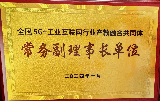 2024年10月获得“全国5G+工业互联网行业产教融合共同体”常务副理事长单位荣誉称号