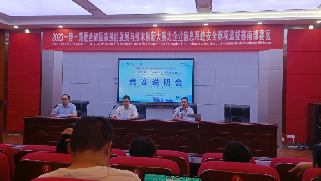 7月1日,2023一带一路暨金砖国家技能发展与技术创新大赛之企业信息系统安全赛项选拔赛南部赛区在我校开赛。此次选拔赛有来自有来自湖北、湖南、福建、广东、海南5省市的56个参赛队,112名参赛选手在线上同台竞技。