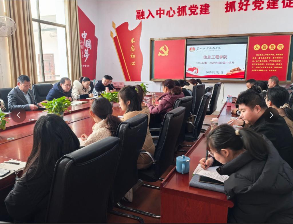 2025年2月21日,信息工程学院在2215会议室召开全体教师第一次政治理论集中学习会议,深入学习贯彻《教育强国纲要》及湖北省教育大会精神和《教育部关于高校教师师德失范行为处理的指导意见》,会议由学院党总支书记张宝华主持,学院全体教师参加。