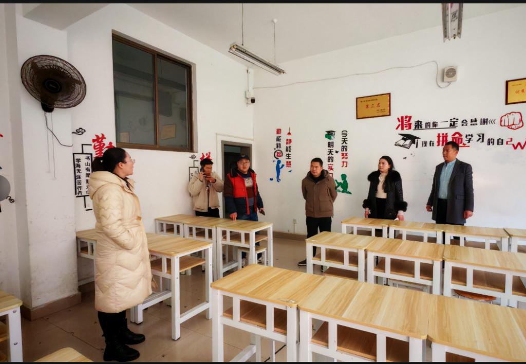 在教学楼,检查组逐一走进教室,重点检查多媒体投影仪等教学设备运行情况,对课桌椅摆放不规范、机房软件调试不到位等问题,现场交办责任人并明确整改时限,全力保障课堂教学顺利开展。