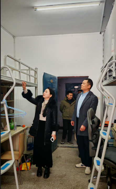 在学生宿舍,检查组逐间排查环境卫生、用电安全及消防设施完好性,重点整治私拉乱接电线、违规使用大功率电器等隐患,了解宿舍通风消杀情况,对卫生死角、消防器材摆放不规范等问题现场督促整改,要求辅导员加强学生安全宣传教育,营造安全温馨的住宿环境。
