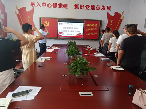 2023年9月1日下午,信息工程学院党总支开展了支部主题党日活动。应到11人,实到10人。活动由党总支书记周俊同志主持,主要活动情况汇报如下:
