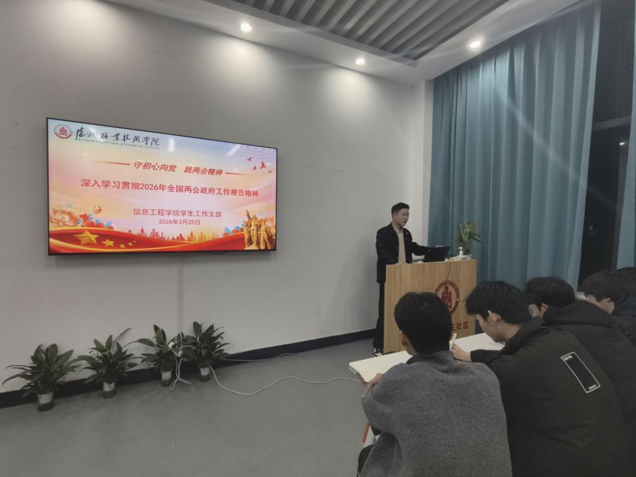 春潮涌动启新程,奋楫扬帆正当时。2026年全国两会在“十四五”圆满收官、“十五五”开局起步的关键节点胜利召开,为国家发展擘画了宏伟蓝图,也为青年一代成长指明了前进方向。为引导大学生入党积极分子坚定理想信念、筑牢思想根基,切实把思想和行动统一到两会精神上来。3月25日,信息工程学院学生工作支部在学校一站式社区组织大学生入党积极分子46人开展以“守初心向党,践两会精神”为主题的专题学习活动,以学铸魂、以学增智、以学正风、以学促干,凝聚青年奋进力量。