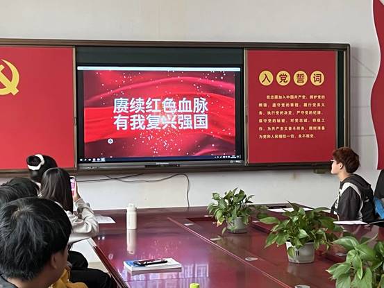 本次活动在《光荣啊,中国共青团》团歌中拉开序幕。我院团总支以“赓续红色血脉,有我复兴强国”为主题,同现场团员青年们进行交流分享。作为一名青年学生,应当不负韶华、不辱使命,沿着习近平总书记指引的方向,努力在青春的赛道上跑出当代青年的最好成绩;要怀抱梦想脚踏实地,立志做有理想、敢担当、肯奋斗的新时代好青年。在分享环节,宣传部干事李毅炜带领大家深刻解读党的二十大报告对青年工作的新要求,引导青年学生自觉践行“请党放心、强国有我”的青春誓言。
