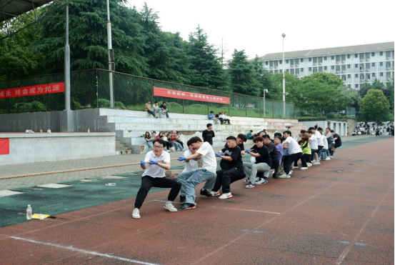 各参赛队伍都展现出了顽强拼搏、永不言弃的精神。尤其是在决赛环节,23计应1班和23电信大数据班狭路相逢。两支队伍实力强劲,比赛一开始便进入白热化阶段。长绳在两队之间来回移动,僵持不下。双方队员涨红了脸,即便手掌磨破、身体疲惫,依然咬牙坚持。最终,23计应1班凭借更胜一筹的耐力和团队协作,战胜对手,夺得本次拔河比赛的冠军。