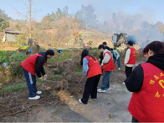 清理出的枯枝败叶堆积较多,志愿者们用火钳将其分类归集,把易燃烧的枯枝归为一堆,夹杂的塑料垃圾单独收纳。在社区指定的空旷通风区域,2 名有经验的志愿者负责点火,一人手持灭火器旁站看护,另一人用长杆不时翻动火堆确保充分燃烧,全程无火星外溢、无浓烟扩散,安全处理完所有可焚烧的枯枝。针对地砖缝隙中扎根的杂草、墙角与路面衔接处的顽固藤蔓,志愿者们换上尖头铲子,对准根部轻轻撬动,再用手拔除残留根系;对于黏附在路沿石上的干枯杂草碎屑,则用铲子边缘仔细刮除。