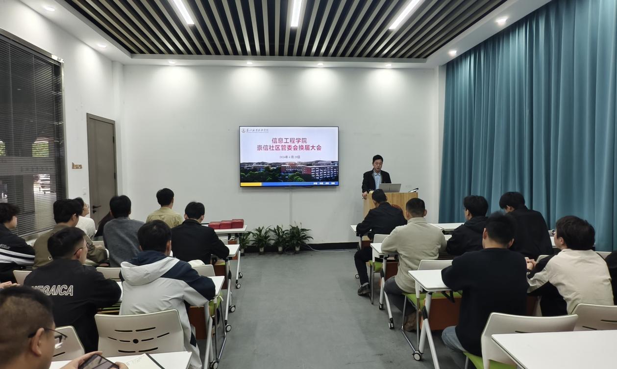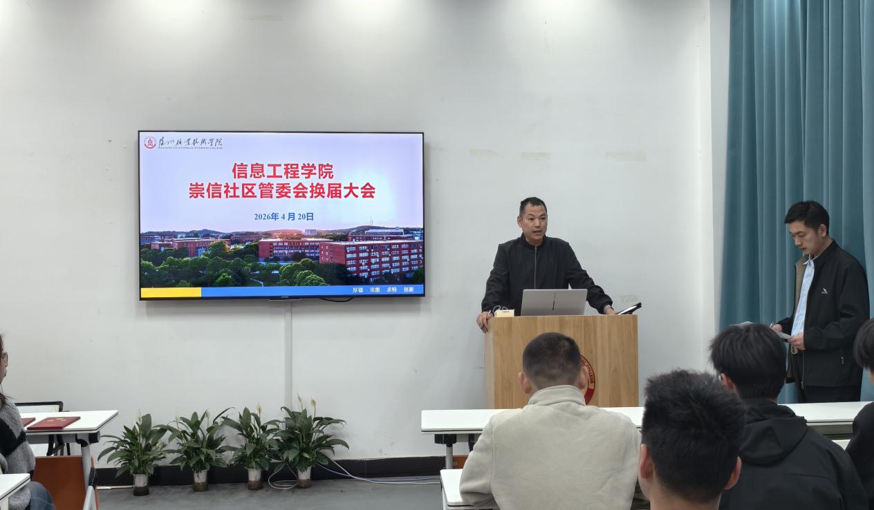 为进一步规范崇信社区管理,明确岗位职责,凝聚工作合力,推动社区服务提质增效。4月20日,崇信社区管理委员会换届大会在学校一站式社区顺利召开。信息工程学院党总支副书记吴付勇、学生工作办公室全体成员、崇信社区管理委员会全体成员出席会议,大会由李国赢主任主持。