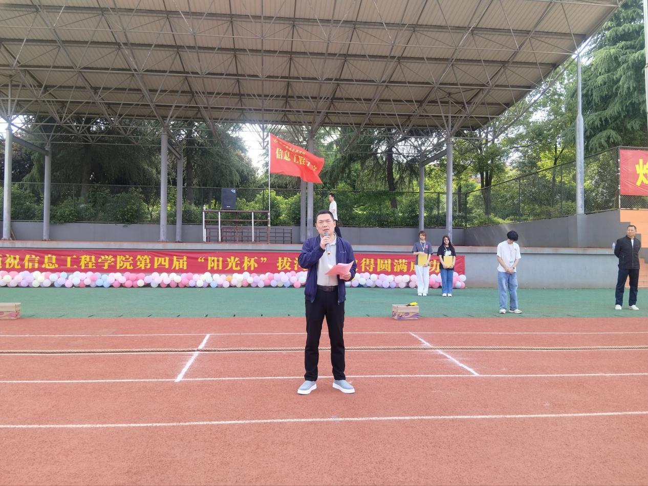 信息工程学院党总支副书记、院长周俊出席并致辞。他指出,心理健康是青年学子成长成才的重要基石,团结协作、顽强拼搏的精神是滋养心理健康的重要力量。本次比赛是学院落实5·25心理健康教育节部署的具体举措,也是丰富学生课余生活、培育团队精神的重要途径,希望全体参赛队员能够以赛会友、以赛砺志,在比赛中感受团队的力量,在拼搏中收获成长与快乐,号召全体师生关注自身心理健康,主动调节情绪,凝聚奋进力量,共同营造积极向上、团结和谐的校园氛围。
