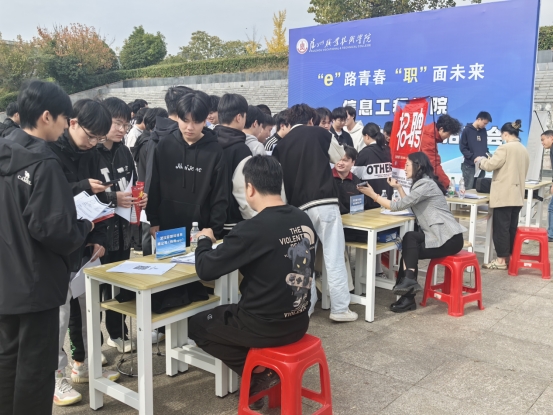 本网讯通讯员 丁建文报道 为推动学院2025届毕业生就业工作,搭建毕业生与用人单位之间的双向选择平台,信息工程学院于11月8日在图书馆前举办了2025届毕业生双选会。
